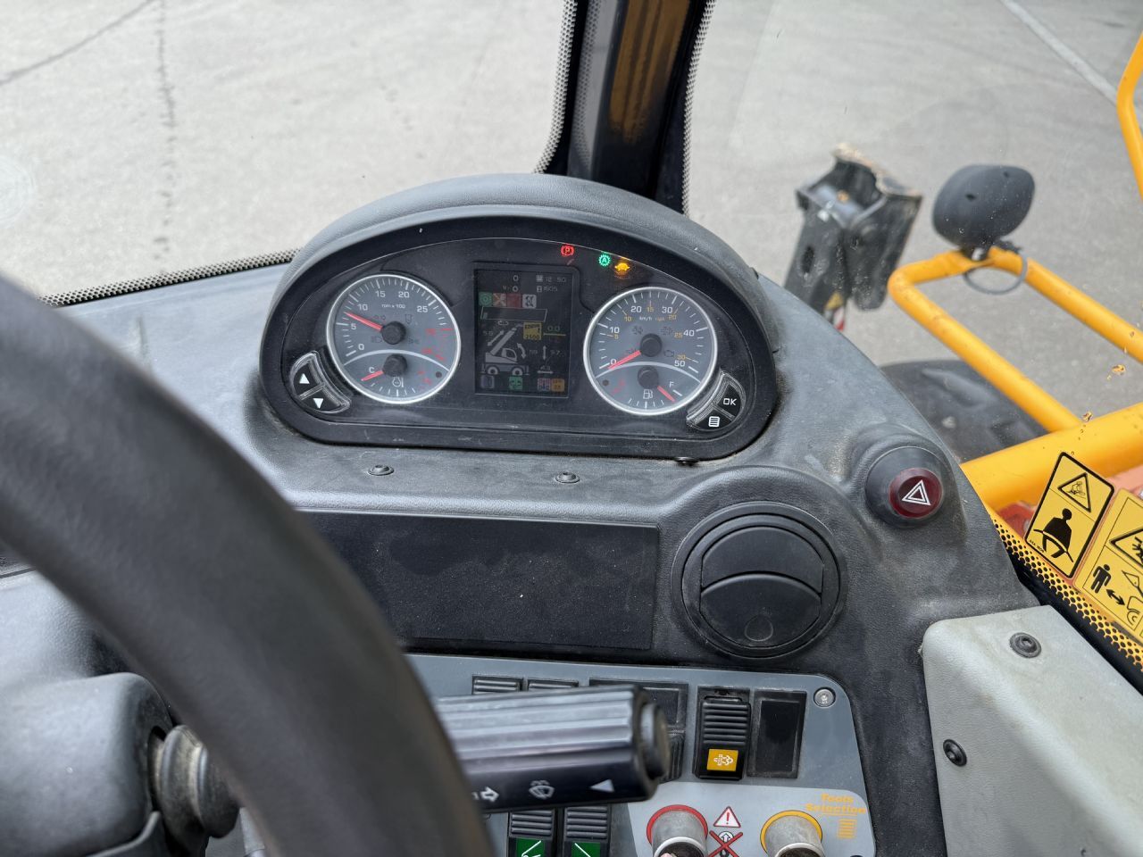 Bedienelemente: 2x Joystick / Anbaugeräte: Gabelträger FEM + Zinken / Funkfernbedienung