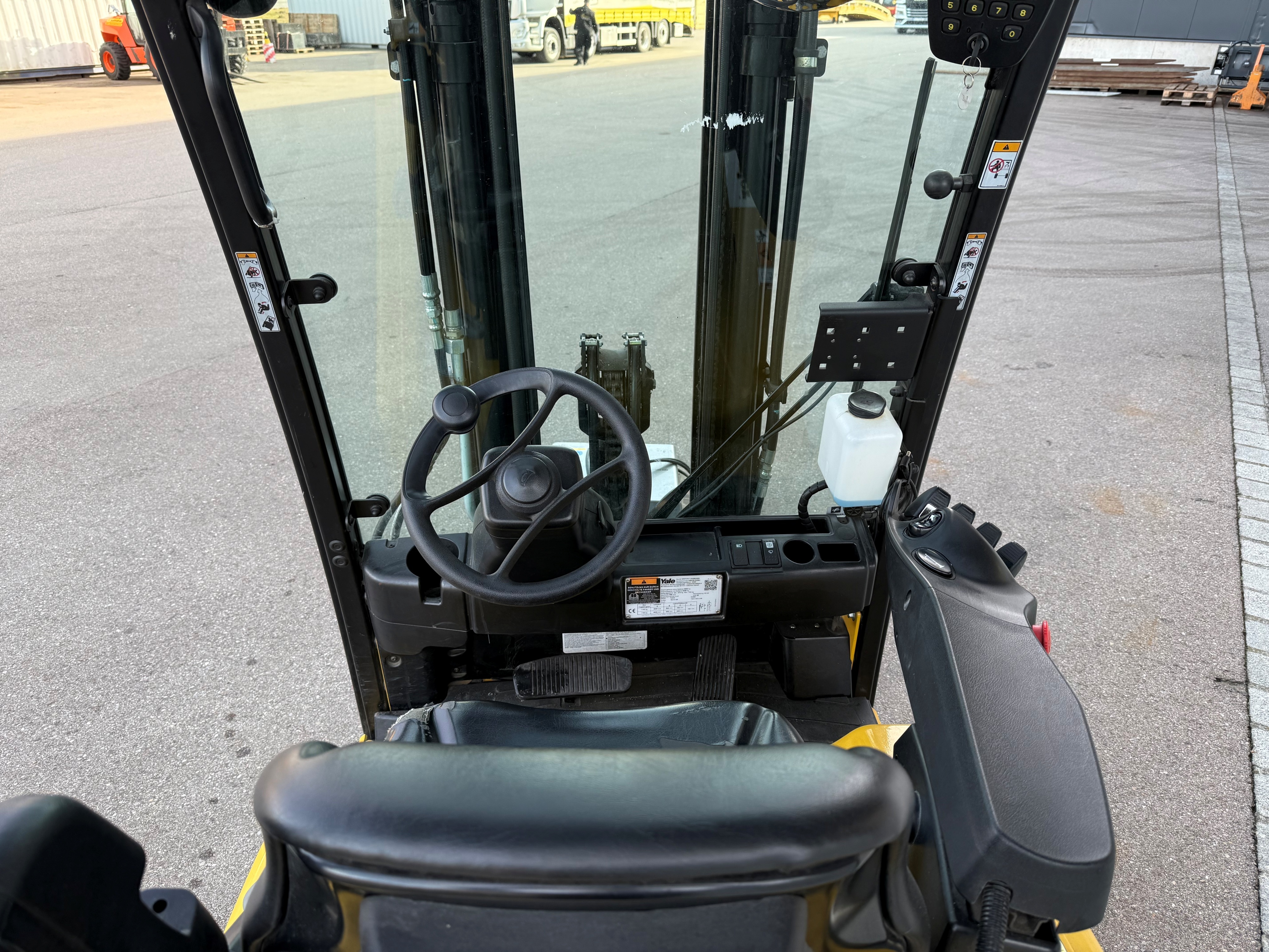 Bedienelemente: AccuTouch-Minihebel / Anbaugeräte: Durwen RZV20-S Zinkenverstellgerät mit separatem Seitenschub/ Sonderausstattung: Frontscheibe/Dachabdeckung / Beleuchtung: Arbeitsscheinwerfer 2x vorne, 1x hinten, BluePoint